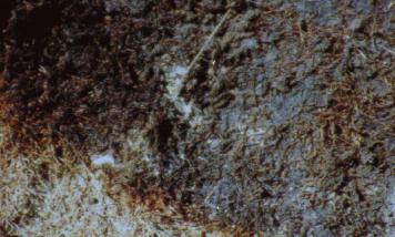 下の写真はナホトカ号の原油流出事故で汚染された海岸での事例です。 | 環境修復効果を見てください。写真は油の打ち上げられた海岸沿いの草地です。 |  | ←地面に油が染み込んでいる状態。 放置しておくと草も生えません。 (1997年2月) |  | ←ここにオイルゲーターを撒きます。 (1997年2月) |  | ←油が分解され草地が蘇りました! (1997年5月) |